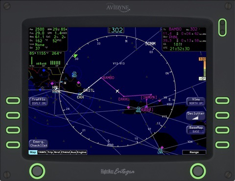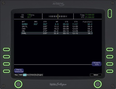 Note: The default GNS 430 avionics do not expose approach waypoint information. SIDs, STARs, and enroute flight plans will show up on the Entegra MFD, but approaches will not, due to this Laminar Research limitation. If this changes, we will integrate full waypoint drawing. This does not affect the HSI and flying approaches, just the depiction on the MFD. RealityXP avionics show waypoints from all phases of flight without issue.