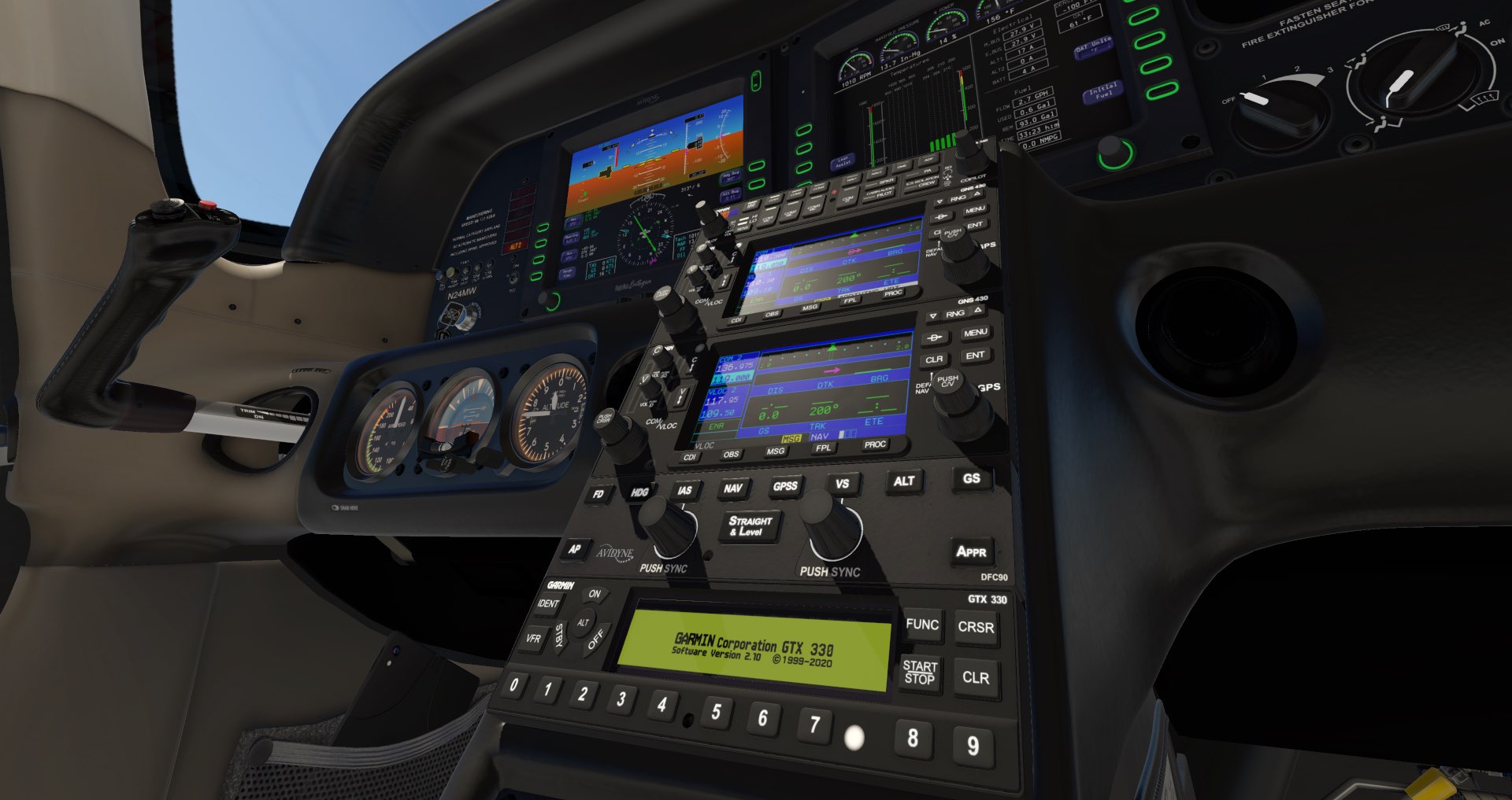 Also simulated, the GTX 330 transponder and STEC-55X Autopilot!